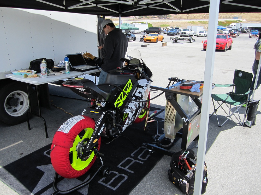 Team Icon Brammo Motorcycles waiting for practice to start.