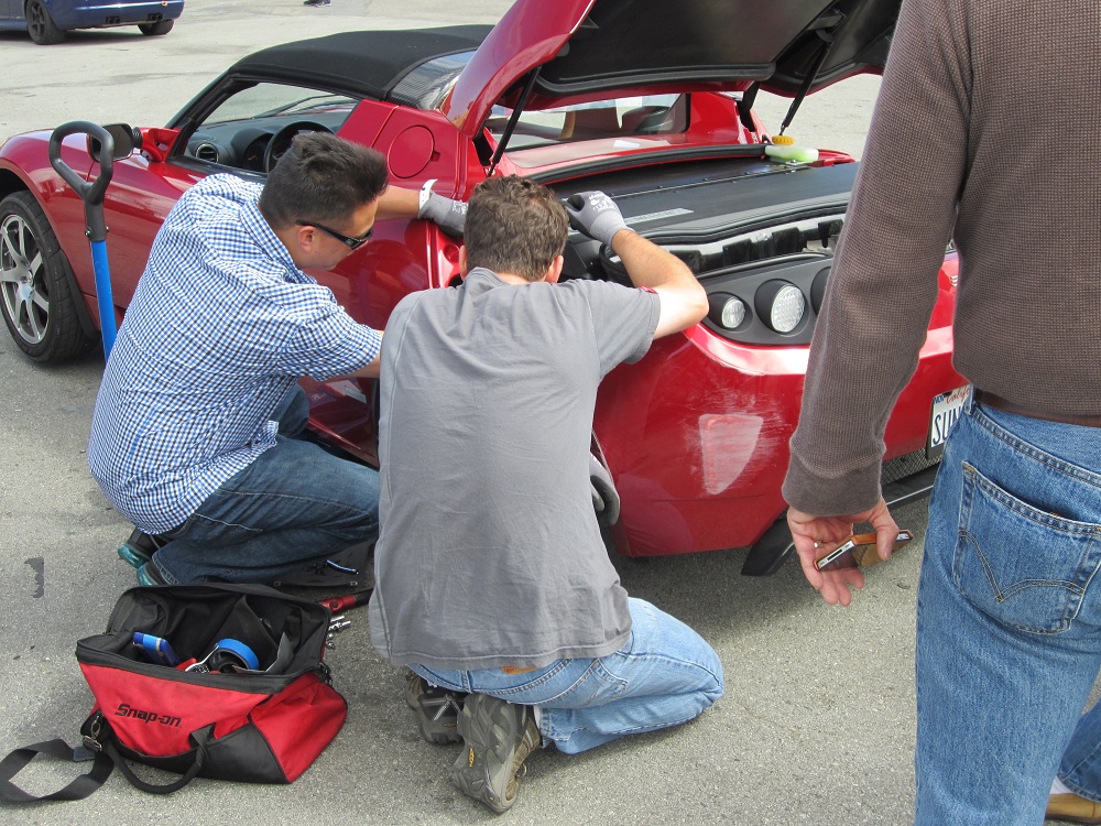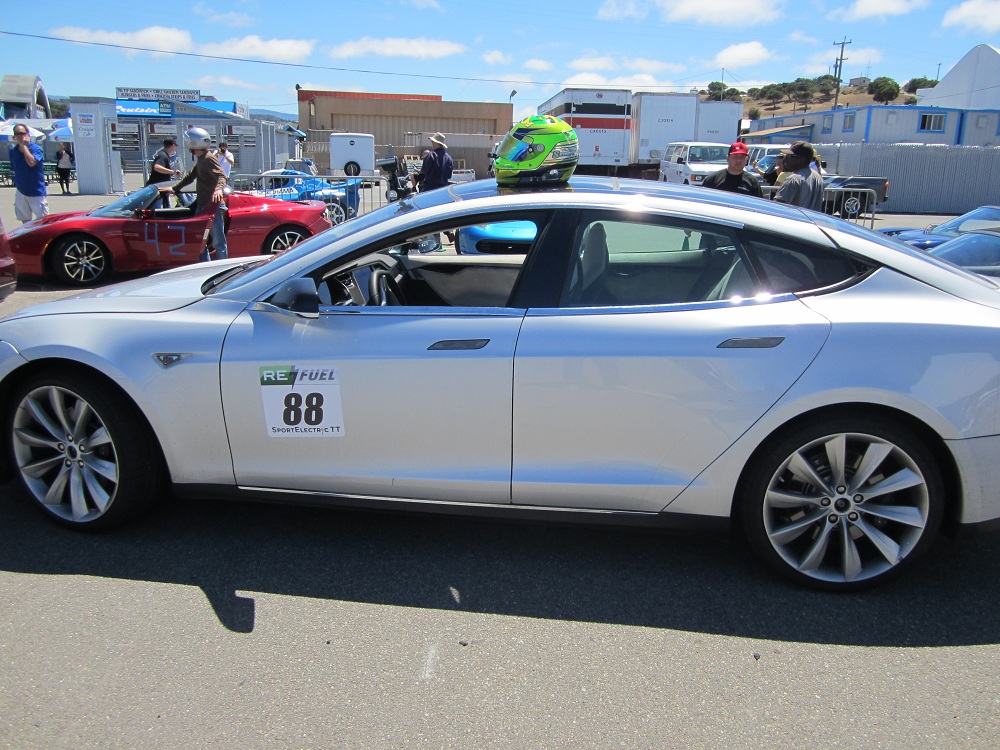 An unmarked Tesla Model S being tested by Testla The #33 hit the wall, and the Tesla engineers were happy to help out